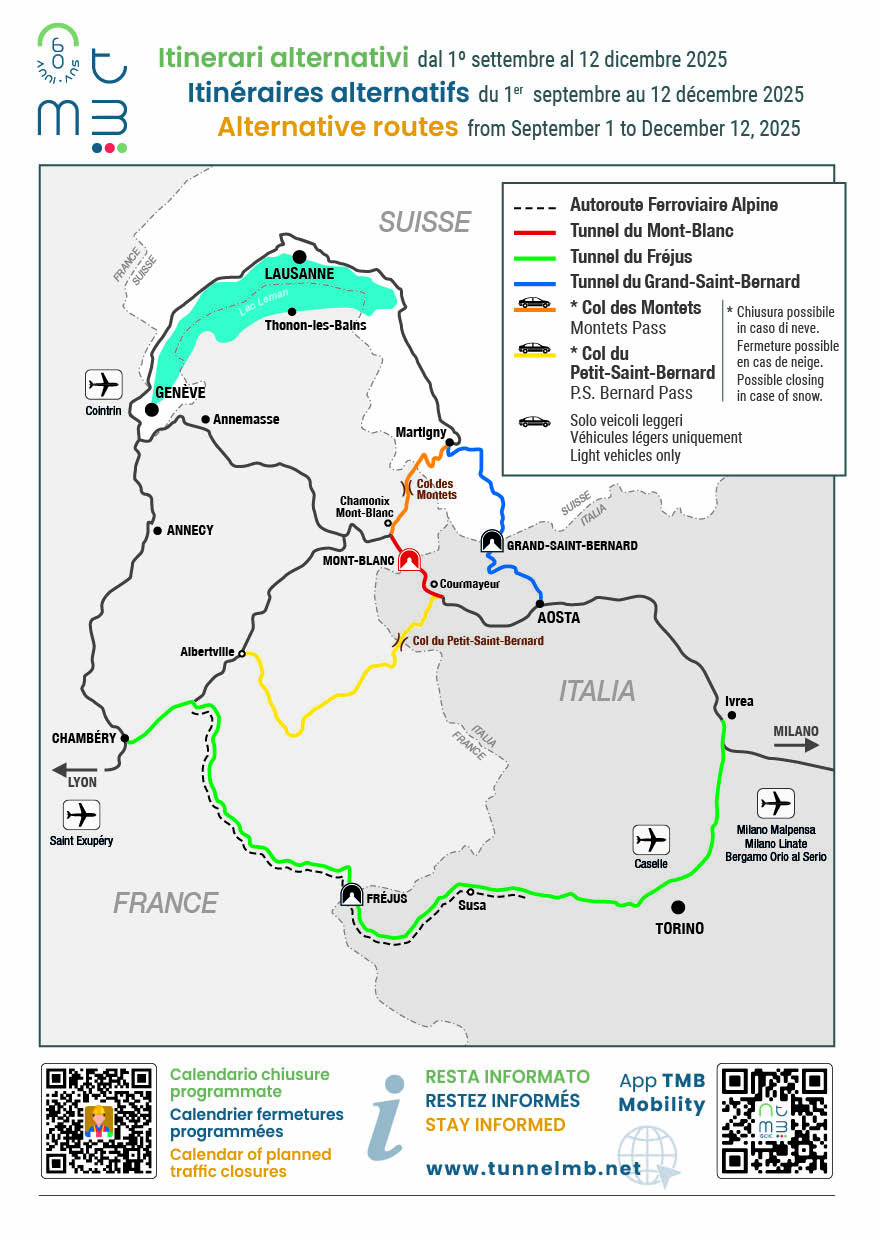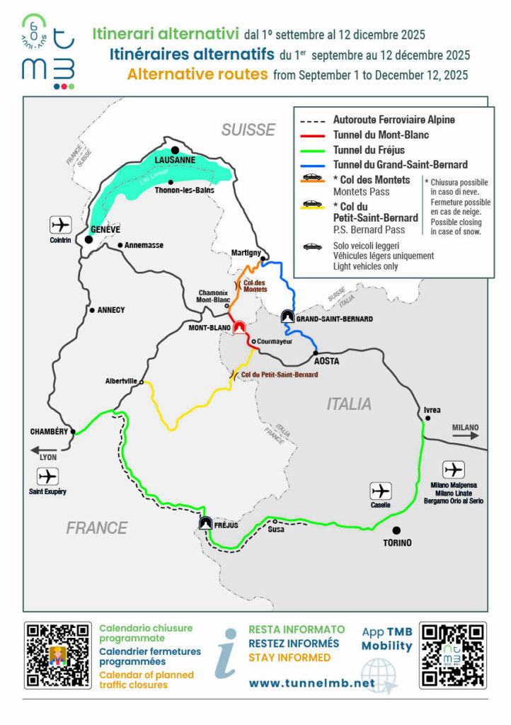 “Il periodo – si legge in una nota - è stato individuato insieme alle prefetture della Valle d'Aosta e dell'Alta Savoia, ritenendo l'autunno come il periodo meno impattante sul turismo, in particolare per i veicoli leggeri, i primi utilizzatori del traforo (75% del traffico nel 2024) e sull'economia tra le due regioni”.